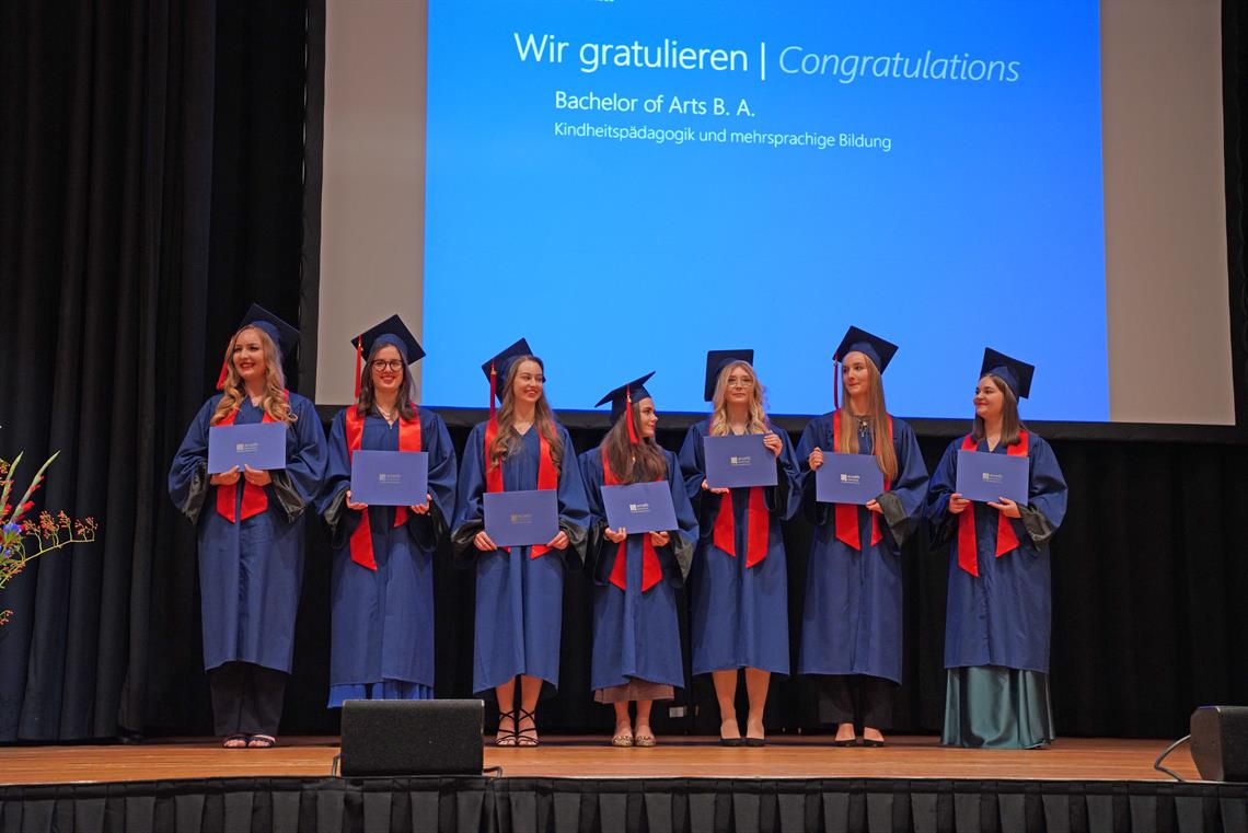 Die Pionierinnen des Fachbereichs absolvierten das Duale Studium in “Kindheitspädagogik und mehrsprachige Bildung B. A.” mit Firmen wie bspw. der Stadt Bad Homburg, der accadis International School oder der Einrichtung “Kinderzeit Gute Zeit. Neben diesem Studiengang bietet die Hochschule mittlerweile auch die Studiengänge “Soziale Arbeit und Management B. A.” und ab Oktober 2026 “Ganztagspädagogik B. A.” an.