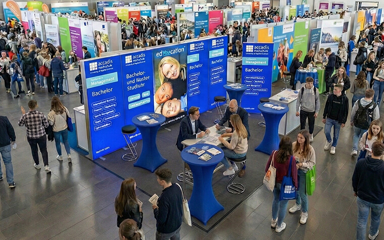 Nutzen Sie unser vielfältiges Angebot, uns kennenzulernen, auf Herz und Nieren zu prüfen und mit Fragen rund um das accadis-Studium zu löchern. Wir freuen uns auf Sie.